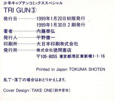 Trigun Volume 3 is the third volume of Trigun as published under Shonen Captain Comics Special.