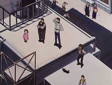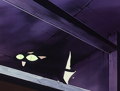 - The edge of the cel is briefly visible in the first frame of Kuroneko's animation in this scene, making it appear as if she is missing the bottom half of her body.