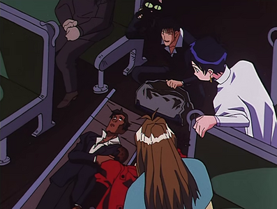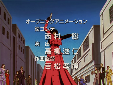 At 01:01, a clip from the episode is used where Kuroneko falls on Vash's head from the sky.
