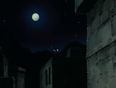 At 10:33, Kuroneko was sitting on the roof of one of the buildings in Warrens City at nighttime. She meowed mournfully towards the moon.