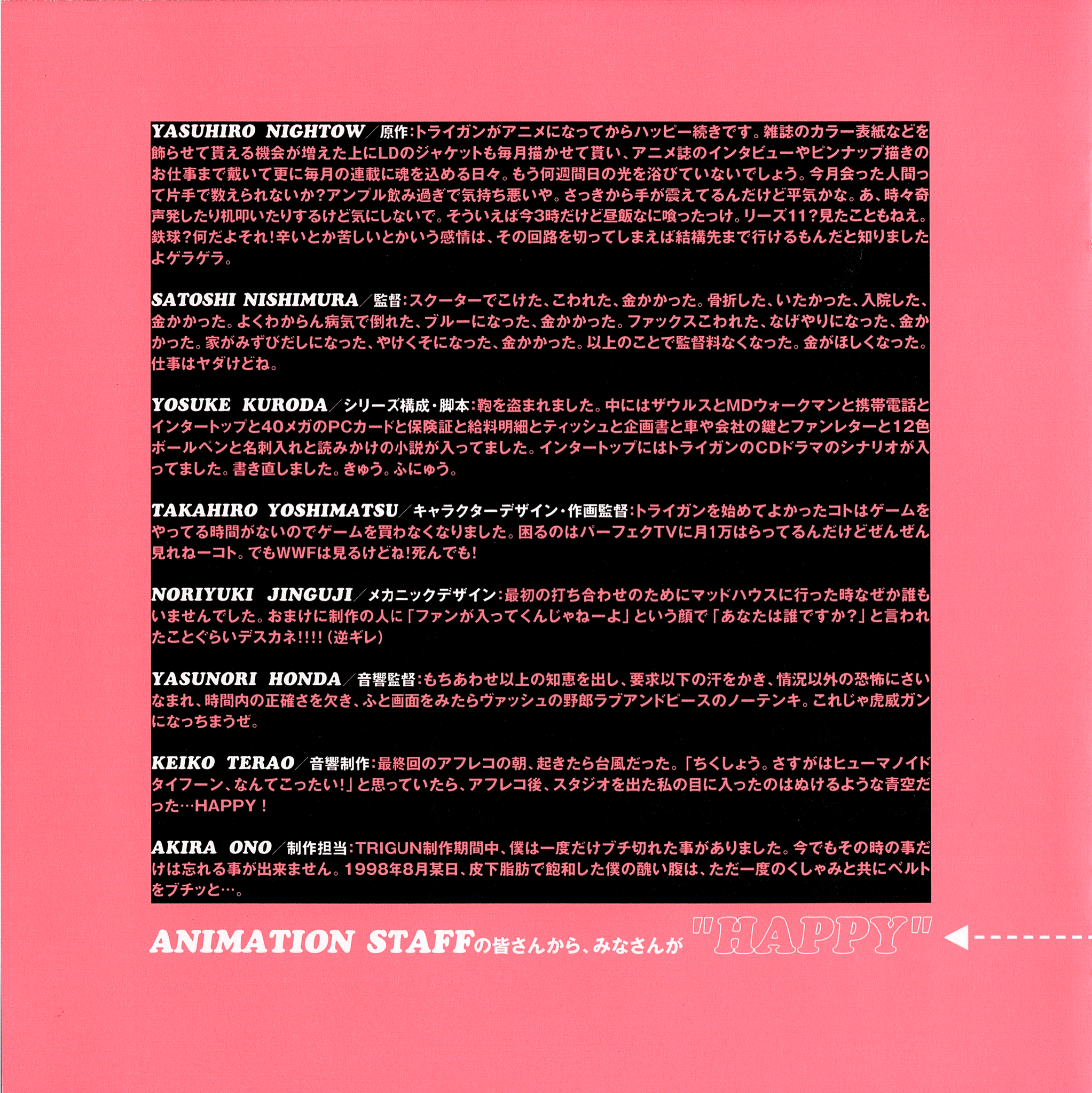 Page 11 of the booklet for the Japanese release of the Trigun: The 2nd Donut Happy Pack CD by Victor.