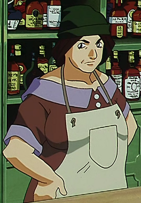 The bartender has a gruff, no-nonsense personality. She is shown to be very tough and courageous.