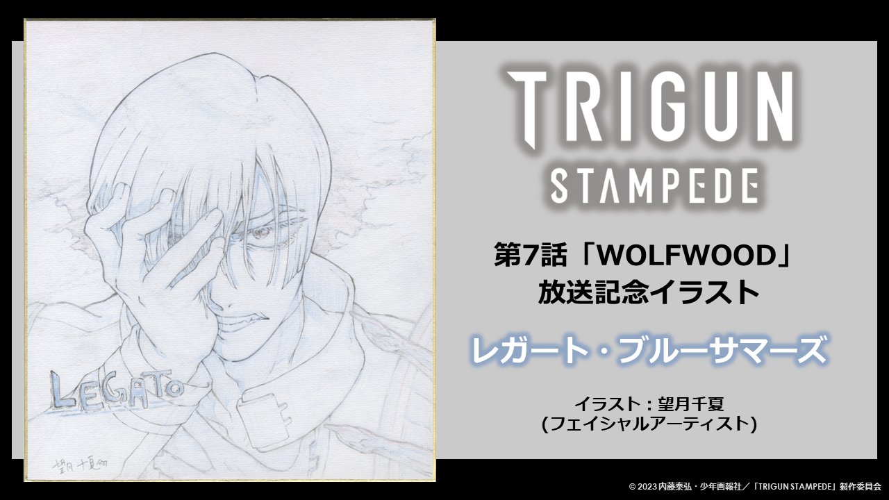 Commemorative illustration for Trigun Stampede Episode 07's broadcast, featuring Legato Bluesummers Illust. by Facial Animator Chinatsu Mochizuki