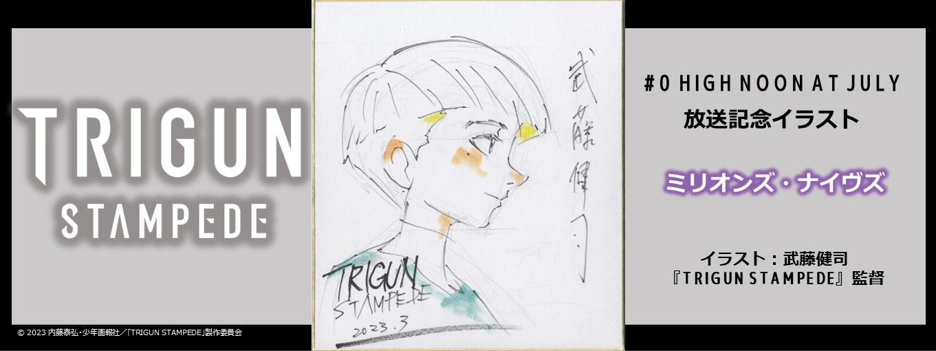 Commemorative illustration for Trigun Stampede Episode 00's broadcast, featuring Millions Knives Illust. by Director Kenji Muto