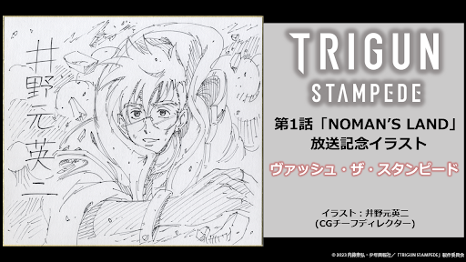 Revision as of 21:02, 20 July 2023 by KJNanika (talk | contribs) (Commemorative illustration for Trigun Stampede Episode 01's broadcast, featuring Vash the Stampede Illust. by CG Chief Director Eiji Inomoto source:https://twitter.com/trigun_anime/status/1611762800128593920)