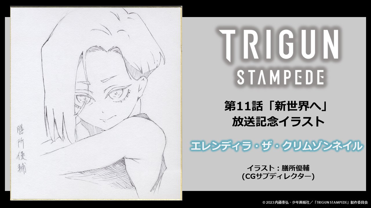 Commemorative illustration for Trigun Stampede Episode 11's broadcast, featuring Elendira the Crimson Nail Illust. by Sub-director Zeze Yuusuke