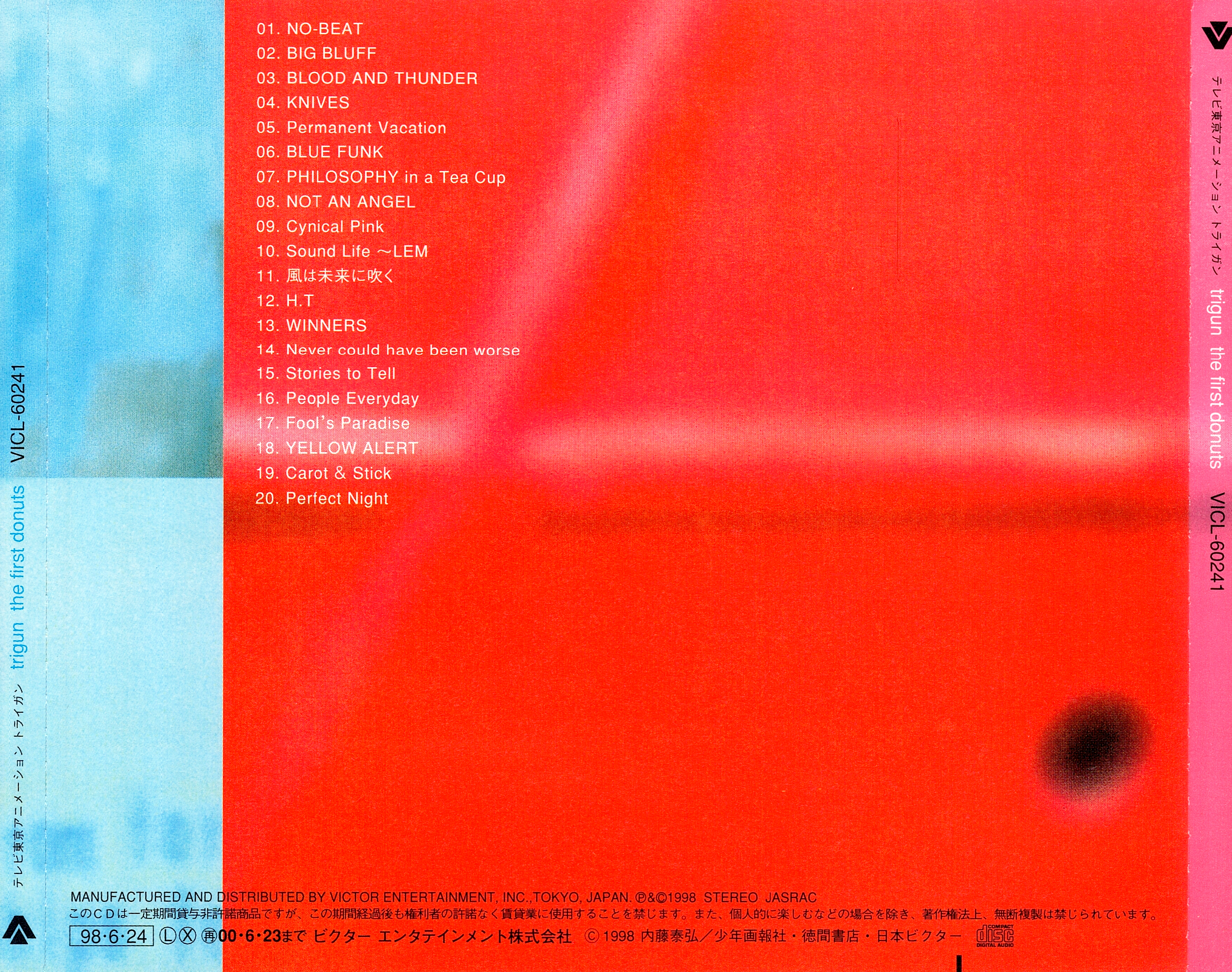 Back cover for the Japanese release of the Trigun The First Donuts CD by Victor.