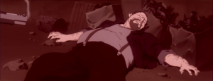 Wolfwood is seen repairing this battered red motorcycle in Tonim. PARADISE